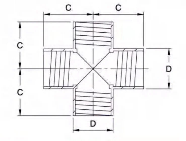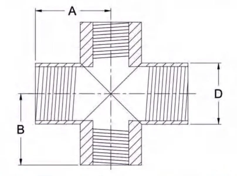 The threaded connection allows for easy installation and maintenance, as the cross can be easily screwed onto the pipes without the need for any special tools or equipment. This makes it an ideal choice for applications where quick and easy connection of the pipes is required.